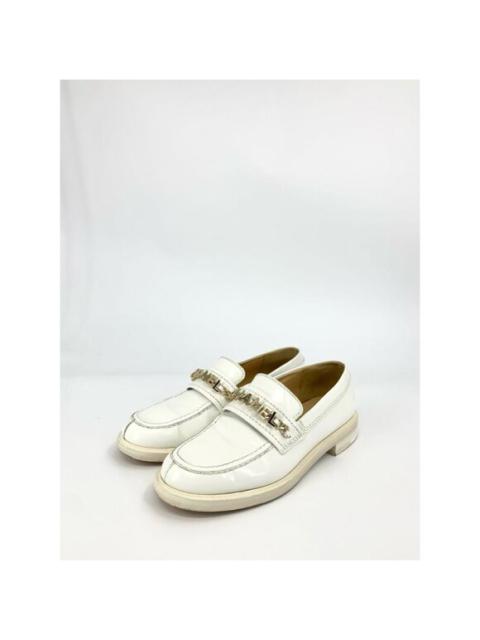 Chanel White Patent Leather Loafers Sz 37.5 W/ Gold Metal Logo Accent