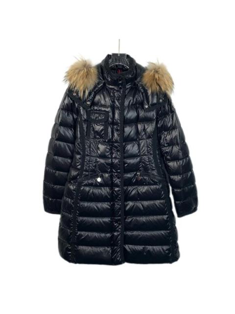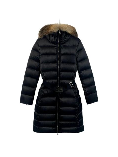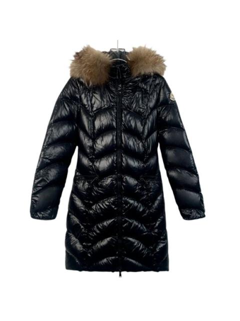 Moncler Womens Black Down Puffer Coat With Fur Trim Hood Longline Quilted Design