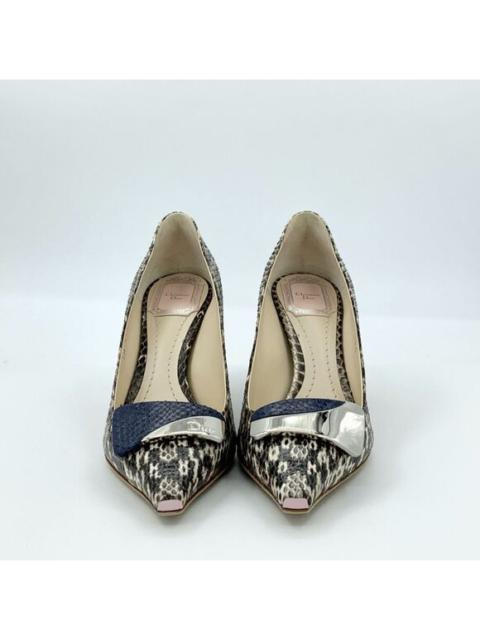 Christian Dior Snake Print Pointed Toe Pumps With Silver & Navy Bow Detail Size