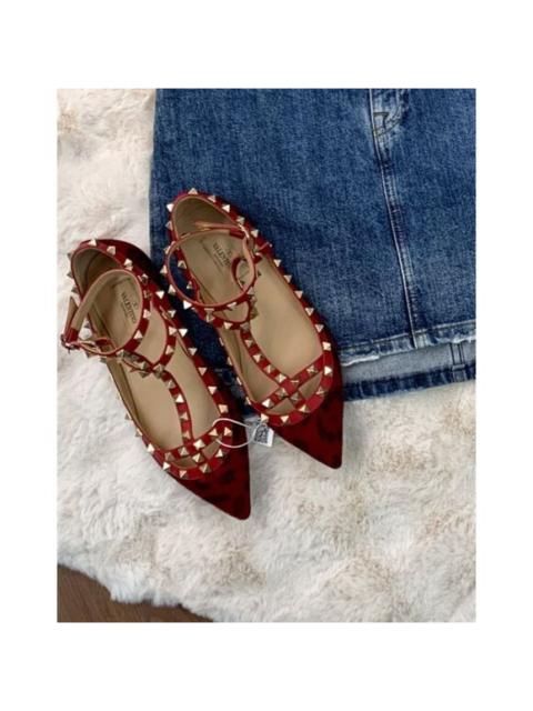 Valentino Garavani Red Leopard Studded Pointed Toe Mary Jane Flats