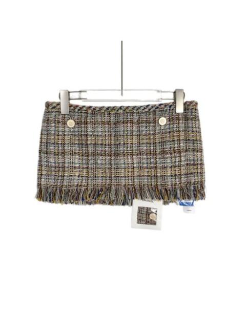 Chanel Multicolor Tweed Mini Skirt With Fringe Hem & Braided Waistband Buttons M