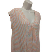 Anthropologie - Anthro Meadow Rue Pink Striped Sheer Spliced Linen Blend Top Medium