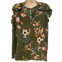 belle sky - Belle + Sky Cold Shoulder Green Floral Top Small