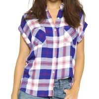 Rails Britt Plaid Rolled Cap Sleeve Button Up Small
