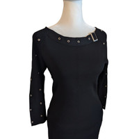 Vintage Ruby Cho Black Grommet Knit Sweater Skirt Set Small