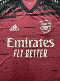 2020-21 Arsenal adidas Pre-Match Shirt S Condition - Excellent Size - Small Condition Details - Pristine colour, very smooth material, badges and sponsor are excellent Design - adidas Players - Aubameyang, Lacazette, Xhaka, Guendouzi, David Luiz Details - Pre-Match shirt as worn by Arsenal for Mikel Arteta's first full season as manager when they finished 8th in the Premier League. Strong start to the season by defeating league champions Liverpool in the FA Community Shield. Their form slipped as they had eliminations from the FA Cup, the EFL Cup, and the UEFA Europa League, they failed to qualify for European competitions for the first time since the 1994–95 season.