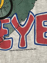 Rare pieces Popeye King Features syndicate pit to pit 21.5 inch Length 28 inch Single stitching Made in USA used condition message for any inquiries Thank You