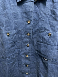 Issey miyake inspired denim shirt Mademoiselle denim shirt Pit to pit 22 inch Length 28 inch Made in Japan Used condition Message for any inquiries Thank you