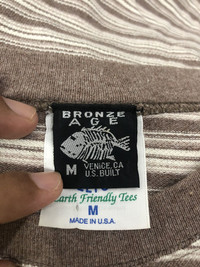 Bronze Age stripes Size Medium Made in USA 100 cotton Pit to pit 20.5 inch Length 28.5 inch Good used condition 9/10 Message me for any inquiries Thank you