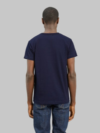 This indigo-dyed version of 3sixteen’s iconic Heavyweight T-Shirts brings everything you love about their core tees—with a bold twist that promises beautiful fading over time. Made from a 260gsm tubular-knit jersey, the fabric is developed exclusively for 3sixteen by Roopa Knitting Mills, one of the most respected mills in the world. What sets this version apart is the use of indigo rope-dyed yarns, traditionally used in denim, which will fade beautifully with wash and wear—gradually evolving into a soft, light blue with high-contrast highlights. The tees are pre-laundered, so shrinkage is minimal, and the fabric is soft yet substantial from day one. As always, these tees are finished with a triple-needle coverstitched ‘never-sag’ collar, and are cut and sewn in San Francisco at the same factory that makes 3sixteen’s denim—ensuring the same standard of craftsmanship and attention to detail. This updated version features: If you're looking for a wardrobe staple that develops character with every wear, this is it. This pack includes two t-shirts. Fit Notes: These tees stays true to standard sizing. If you usually wear a size M in 3sixteen shirts or other American brands, you'll find a suitable fit with this shirt in size M. However, as always, we recommend consulting our size chart for the perfect fit. Details - 225 gsm jersey fabric custom knit in Canada - 100% cotton - Triple needle coverstitched collar - 2-pack - Made in USA