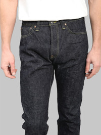 The Samurai S140VXJ "Jin" showcases the distinctive characteristics of left-hand twill denim. This 17oz heavyweight fabric represents a less common but highly sought-after weave pattern, known for developing unique fade patterns and achieving exceptional softness compared to traditional right-hand twill denims. The relaxed tapered silhouette provides generous room through the top block with a longer rise, while maintaining a sharp taper from the knee down for a modern, flattering profile. This vintage-inspired cut perfectly complements the fabric's unique properties. Each pair features Samurai's signature attention to detail, including custom metal hardware, silver lame selvedge ID, and distinctive jacquard pocket bags. The goatskin leather patch and original back pocket stitching reflect Samurai's commitment to premium construction. This rare left-hand twill interpretation offers denim enthusiasts a unique addition to their collection. Fit Notes: As with many other Samurai Jeans, this model runs slightly small in the one-wash version. In general, we recommend choosing one size larger than your usual. However, as always, we suggest checking the size chart first to find your perfect fit. It is unsanforized but one-washed, so there will be no further shrinkage. Details - 17oz "Jin" left-hand twill selvedge denim - Relaxed tapered silhouette - 100% Cotton construction - Custom Samurai metal hardware - 5 button fly with brand embossing - Silver lame selvedge ID - Fifth pocket selvedge detail - Custom jacquard pocket bags - Goatskin leather patch - Signature back pocket stitching - Original rayon tag - One-wash finish - Made in Japan