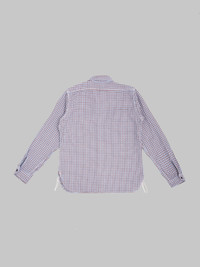 The Samurai Jeans SIN25-02W Western Cut Work Shirt showcases the brand’s unmistakable approach to heritage fabrics and rugged construction, blending traditional indigo dyeing techniques with heavyweight flannel comfort to create a piece built for years of hard wear and beautiful aging. Cut from Samurai’s original “Cheese Indigo” heavy flannel, the fabric features a dense 2/2 twill weave that delivers real substance, warmth, and structure. Thick indigo cheese-dyed yarns are paired with specially reactive-dyed colored yarns to form a rich check pattern with deep tonal contrast. Unlike conventional rope-dyed indigo, the cheese dyeing method saturates the yarn core, resulting in slower, more gradual fading that retains its character while developing a subtle, lived-in patina over time. The texture is weighty and tactile yet soft against the skin — the kind of flannel that feels closer to a light jacket than a shirt, making it ideal for layering through colder seasons. Construction is unapologetically workwear-driven. Triple-stitched rolled seams reinforce stress points for long-term durability, while triple chain-stitched run-off side seams add both strength and authentic vintage character. Double-fabric forearm reinforcements provide extra resistance where wear naturally occurs, and cotton lining at the cuffs, collar, and placket improves both comfort and longevity. Details like indigo-dyed nut buttons, symmetrical Western-style chest pockets, a pencil slot in the right pocket, and the iconic Samurai Union Ticket complete the design. The Western cut silhouette keeps the profile clean and balanced, offering a timeless fit that works equally well layered over a tee or under a jacket. Fit Notes: Although this is a Japanese-made shirt, we carry the Western-cut version of Samurai flannels, which fits closer to standard Western sizing. If you typically wear a size M in American shirts, a size M should fit well here. As always, we recommend consulting our size chart to ensure the best possible fit. Details - 100% cotton original Cheese Indigo heavy flannel - 2/2 twill weave, dense and warm fabric - Cheese-dyed indigo yarns dyed to the core for slow, gradual fading - Reactive-dyed check pattern with deep tonal contrast - Western cut silhouette - Triple-stitched rolled seams for durability - Triple chain-stitched run-off side seams - Double-layer forearm reinforcement panels - Cotton lining at cuffs, collar, and placket - Indigo-dyed nut buttons - Two symmetrical chest pockets with pencil slot - Samurai Union Ticket - Made in Japan