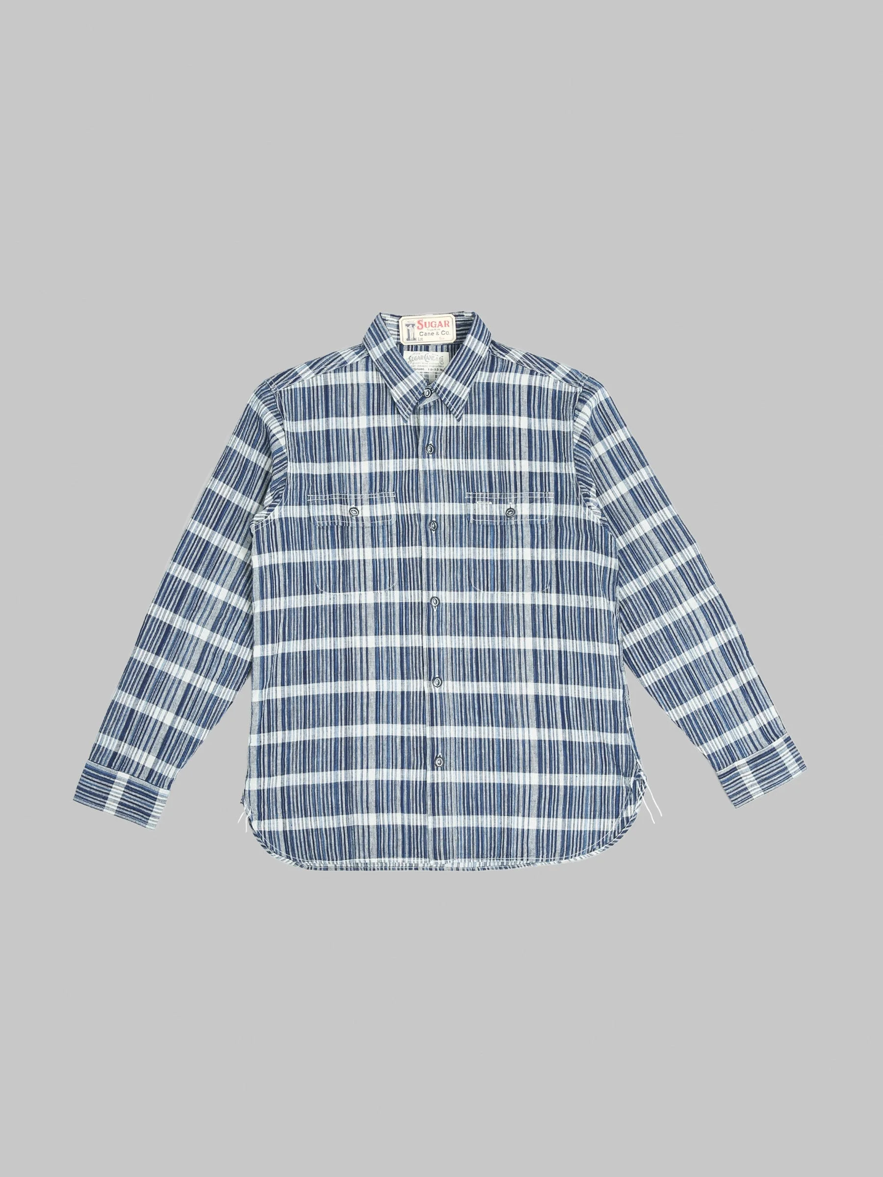 The Sugar Cane Fiction Romance 5oz Indigo Check Work Shirt is a refined fusion of traditional Japanese textile heritage and classic mid-century American workwear design. The fabric is inspired by vintage indigo-dyed textiles originally used in traditional Japanese garments, carefully sampled and reinterpreted while preserving the original yarn character and pattern integrity. The check pattern is constructed using a three-tone indigo kasuri-dyed warp paired with a single-color weft, forming a clean rectangular grid pattern with remarkable depth and subtle variation. This specialized yarn-dye process creates a fabric that feels both visually rich and quietly irregular, giving the shirt an authentic handmade character that becomes even more expressive with wear and fading. Weighing just 5oz, the fabric is lightweight, breathable, and exceptionally comfortable, making this shirt ideal for year-round wear—perfect on its own in warmer months or as a layering piece under jackets and overshirts during cooler seasons. The silhouette is based on a 1940s–1950s American work shirt, featuring the characteristic double flap chest pocketsthat define the era. What truly sets this piece apart is Sugar Cane’s meticulous approach to construction: unlike most work shirts, the chest pocket flaps and pockets are carefully pattern-matched to the check fabric, a rare and labor-intensive detail that speaks to the brand’s uncompromising craftsmanship. Built from 100% cotton and finished entirely in Japan, this shirt balances heritage-driven design, advanced textile development, and timeless wearability. The result is a work shirt that feels light and effortless on the body, yet rich in story, texture, and long-term aging potential—designed to evolve naturally through years of wear. Fit Notes: Although this is a Japanese-made shirt, Sugar Cane sizing runs closer to Western standards than typical Japanese fits. If you usually wear a size M in American shirts, we recommend selecting a size M in this model as well. As always, we suggest consulting the size chart to ensure the best possible fit. Details - Inspired by vintage Japanese indigo-dyed textiles - Lightweight 5oz indigo check 100% cotton fabric - Three-tone kasuri-dyed indigo warp with single-color weft - Clean rectangular grid check pattern with depth and variation - 1940s–50s American work shirt silhouette - Double flap chest pockets - Double-needle construction - Rare pattern-matched pocket and flap construction - 100% cotton for comfort and breathability - Ideal for year-round wear and layering - Designed to fade naturally with wear - Crafted with traditional Japanese precision - Made in Japan