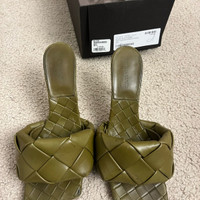 BOTTEGA VENETA Womens Green Lido Toe Stiletto Slip On Leather Heeled Sandal 38.5