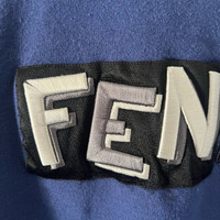 Stylish blue hoodie with bold Fendi logo. Comfortable and trendy.