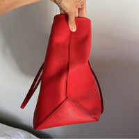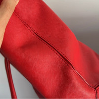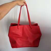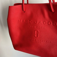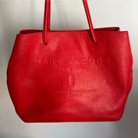 100% authentic Used & has minor signs of wear - any markings / scuffs are shown Marc Jacobs logo shopper East West tote bag / purse bright red textured cow leather Do not lowball please The red leather is in amazing shape Sold as is (no returns)