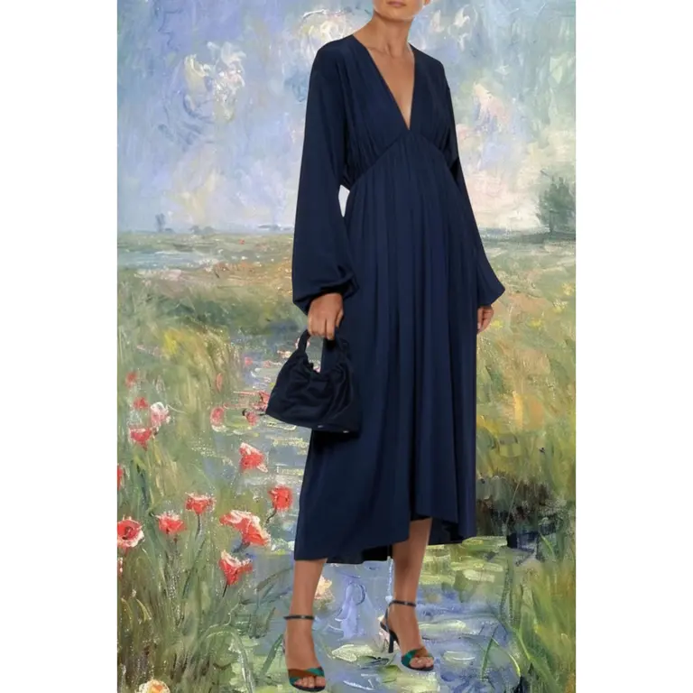 The Row Sasha Blue Silk Navy Midi Dress phenomenal quality silk and elastane has tons of stretch size medium, new with tags, rp 3350€