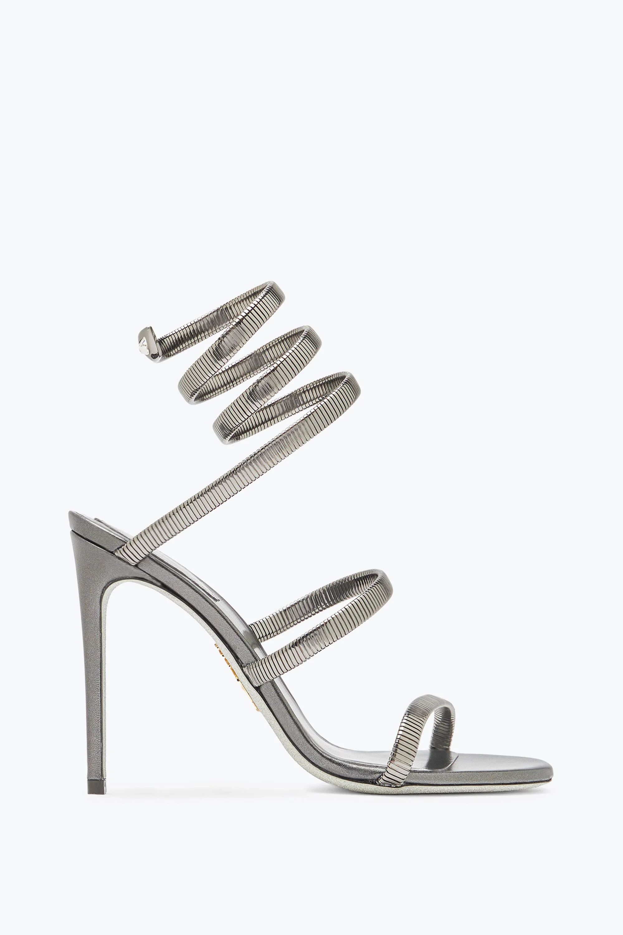 An intriguing play of metal links elegantly wrap the ankle in the Juniper gunmetal sandal, giving every look an almost futuristic accent. The high stiletto heel and stardust sole embody the maison's DNA. - Leather, copper - Serpent hardware - Stiletto heel height 4.1’’ - Round toe - Stardust sole - Made in Italy Ref. C11628-105-NA01CDFA