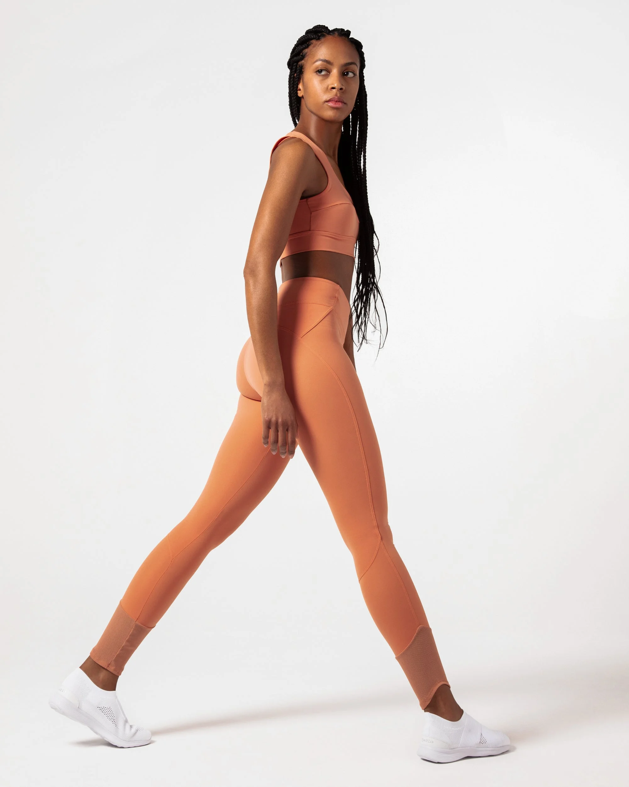 With its wide cross-body waistband and ergonomic cutouts along the muscles, these leggings shape the silhouette and follow the body's lines perfectly. Knitted with an ultra-fine gauge, the silk knit offers a soft, plush feel and complete opacity. It is made with the latest technology and provides muscle support during exercise to reduce vibration and fatigue. Material: Active Soft Mesh Composition: 73% Polyamide - 27% Elastane / Yoke: 60% Polyamide - 40% Elastane Color: Bronze orange Details: Active mesh legging. Wide cross belt at the waist. Ergonomic cut-outs. Bottom of the legs with fishnet yoke. R circle logo transfer with pearl effect. The model is 1,75m and wear a S size. Ref: S0587-353-XS Product details Active mesh legging. Wide cross belt at the waist. Ergonomic cut-outs. Bottom of the legs with fishnet yoke. R circle logo transfer with pearl effect.