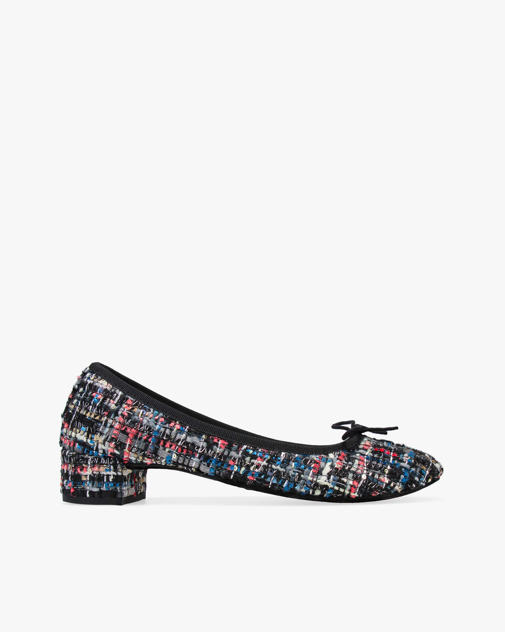 La ballerine Camille est un modele iconique de la Maison Repetto. Reprenant les codes d’elegance et de feminite de la ballerine Cendrillon, elle arbore un talon discret et confortable de 3 cm pour une silhouette moderne et elancee. Fabrique en France selon le savoir-faire artisanal du cousu-retourne, ce modele allie confort et elegance. Matiere : Textile Couleur : Noir Tweed Hauteur de talons : 3 cm Pays d'origine : France Details : Premiere de proprete en cuir de vachette. Doublure en coton. Talon enrobe en cuir. Cousu-retourne. Semelle caoutchouc naturel Benefice de la fabrication choisie : La fabrication en Cousu retourne est le procede historique de fabrication de la Maison, mis au point par Madame Rose Repetto en 1947. La semelle est cousue au dessus de la chaussure, a l’envers, avant d’etre retournee. Une technique qui confere a la chaussure une souplesse et un confort inegales. La semelle en gomme utilisee sur ce modele apporte une resistance optimale. Ref: V080TWP-410-34