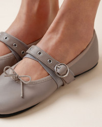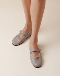 Inspired by the world of ballet, the Ballet Twist Mary Jane embodies the perfect blend of tradition and innovation. Its shape, reminiscent of dance slippers, along with its crossed elastics and leather strap, makes this Mary Jane a style of refined grace, much like a ballerina. Featuring a rubber sole with a small heel, it ensures both comfort and durability. Material : Cowhide leather Color : Taupe beige Heels height: Without heel Country of origin: Tunisia Details: Elasticized ballet flat with strap. Cowhide leather insole. Cotton lining. Rubber sole. Benefits of the selected manufacturing process: The blake stitching construction is handcrafted and robust. It's a manufacturing technique in which the insole, outsole and upper are sewn together with the same thread, providing lightness, strength and flexibility. Ref: V4237VE-264-34 Product details Elasticized ballet flat with strap. Cowhide leather insole. Cotton lining. Rubber sole.
