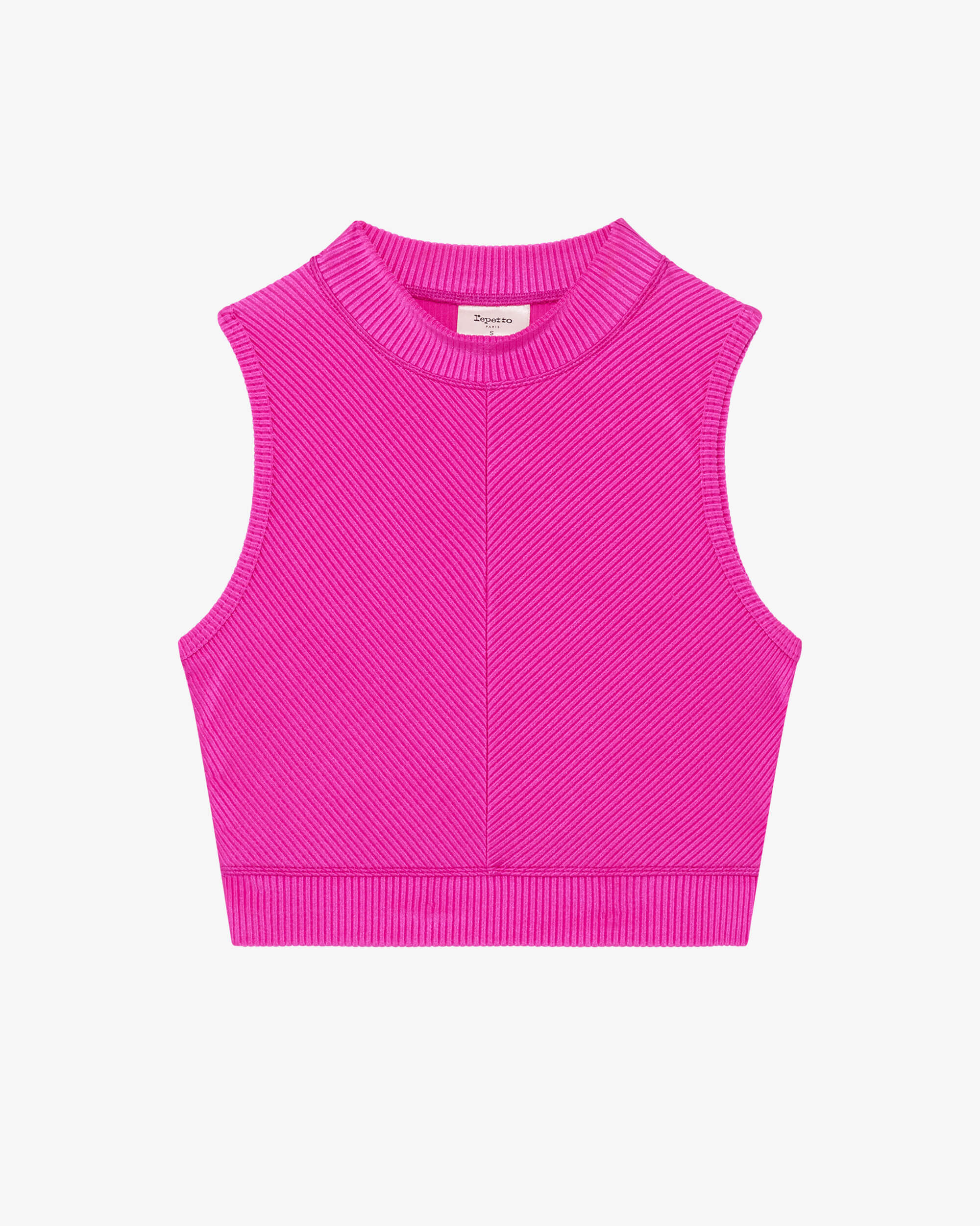 With its ribbed and satin finish, this fabric provides optimal support and sculpts the silhouette, while its quick-drying and sweat-resistant properties ensure comfort and performance. Emblematic of dance, this material in pop colors is a true testimonial of the energy of the 80s. Material : Polyamide 85% Polyamide - 15% Elastane - 90% Polyamide - 10% Elastane Color : Hot Pink Details : Embrace the vibrant and colorful spirit of the 80s with our Dance with Repetto capsule. A fusion of retro sophistication and elegance to accompany your every move with style. With its high neckline and built-in bra, this bra top provides moderate support during activity, while ensuring a vintage and sophisticated look. • Fully lined on the front • Small stand-up collar • Long bra Ref: S0708-1483-XS
