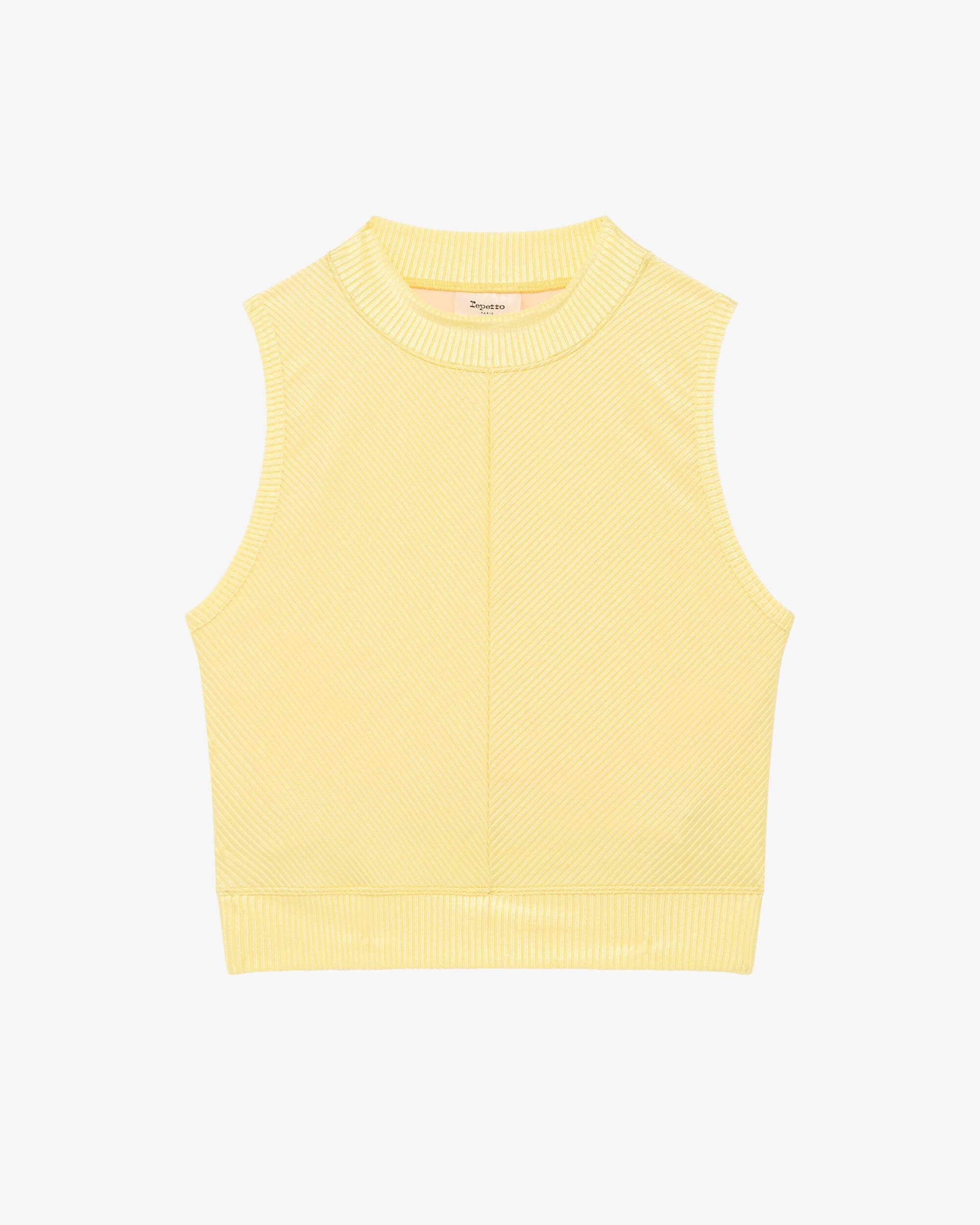 With its ribbed and satin finish, this fabric provides optimal support and sculpts the silhouette, while its quick-drying and sweat-resistant properties ensure comfort and performance. Emblematic of dance, this material in pop colors is a true testimonial of the energy of the 80s. Material : Polyamide 85% Polyamide - 15% Elastane - 90% Polyamide - 10% Elastane Color : Limoncello Yellow Details : Embrace the vibrant and colorful spirit of the 80s with our Dance with Repetto capsule. A fusion of retro sophistication and elegance to accompany your every move with style. With its high neckline and built-in bra, this bra top provides moderate support during activity, while ensuring a vintage and sophisticated look. • Fully lined on the front • Small stand-up collar • Long bra Ref: S0708-1493-XS