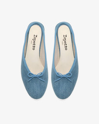 Repetto revisits its great successes by transforming its ballerina into a mule version with a small heel. Inimitable suppleness, signature lace and grosgrain trim place this new model in the great tradition of Repetto's iconic designs. Made in France, using the stitch-and-return artisanal know-how, mules Camille combines unique comfort with the elegance of liberated femininity. Material: Denim cotton Color: Everest blue Heels height: 3 cm Original country: France Details: Cowhide leather insole. Cotton lining. Stitch-and-return. Leather sole. Benefits of the selected manufacturing process: Stitch-and-return is the historical manufacturing process of Maison Repetto, developed by Madame Rose Repetto in 1947. The sole is sewn inside out before being turned inside out. This is an obvious way to create a flexible and emotional model. Ref: V4183JEAN-651-35 Product details Cowhide leather insole. Cotton lining. Stitch-and-return. Leather sole.