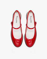 The iconic Cendrillon ballet flat is reinvented with a retro look thanks to its strap and its thick and comfortable rubber sole. Made in France using the artisanal stitch-and-return know-how, the thick sole is then cemented to the structure. Suitable for winter seasons, these Mary-janes are a symbol of femininity, modernity and elegance. Material: Patent Color: Flame red Heels height: 1,5 cm Original country: France Details: Cowhide leather insole. Cotton lining. Stitched and returned. TPU sole. Benefits of the selected manufacturing process: Stitchandreturn is the historical manufacturing process of Maison Repetto, developed by Madame Rose Repetto in 1947. The sole is sewn inside out before being turned inside out. This is an obvious way to create a flexible and emotional model. Ref: V4218V-550-35 Product details L'iconique ballerine Cendrillon se reinvente avec une allure plus retro grace a sa bride et sa semelle gomme epaisse et confortable. Fabriquee en France selon le savoir-faire artisanal du cousu-retourne, la semelle epaisse est ensuite soudee a la structure. Adaptee aux saisons hivernales, cette babies est un symbole de feminite, de modernite et d'elegance.