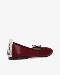 Subtle squarry lines enhancing the mythical codes: made in France using the traditional "stitch-and-return" technique for extreme flexibility, elastic lace, paired with a new logo statement on large gros-grain ribbon in the back of the foot for a sporty allure, recalling dancewear universe. Garance is definitely the edgy and trendy reinterpretation of Maison Repetto emblematic style. Available with a rubber sole for comfort and resistance, these ballet flats can be worn on any occasion. Material : Cowhide leather Color : Deep wine red Heels height: 1 cm Country of origin: France Details: Cowhide leather insole. Cotton lining. Leather wrapped heel. Stitched and returned. Rubber sole. Benefits of the selected manufacturing process: Stitch-and-return is the House's historic manufacturing process, perfected by Madame Rose Repetto in 1947. The sole is sewn to the top of the shoe, inside out, before being turned inside out. This technique gives the shoe unequalled suppleness and comfort. The rubber sole used on this model provides optimum resistance. Ref: V4210VE-1415-35 Product details Cowhide leather insole. Cotton lining. Leather wrapped heel. Stitched and returned. Rubber sole.