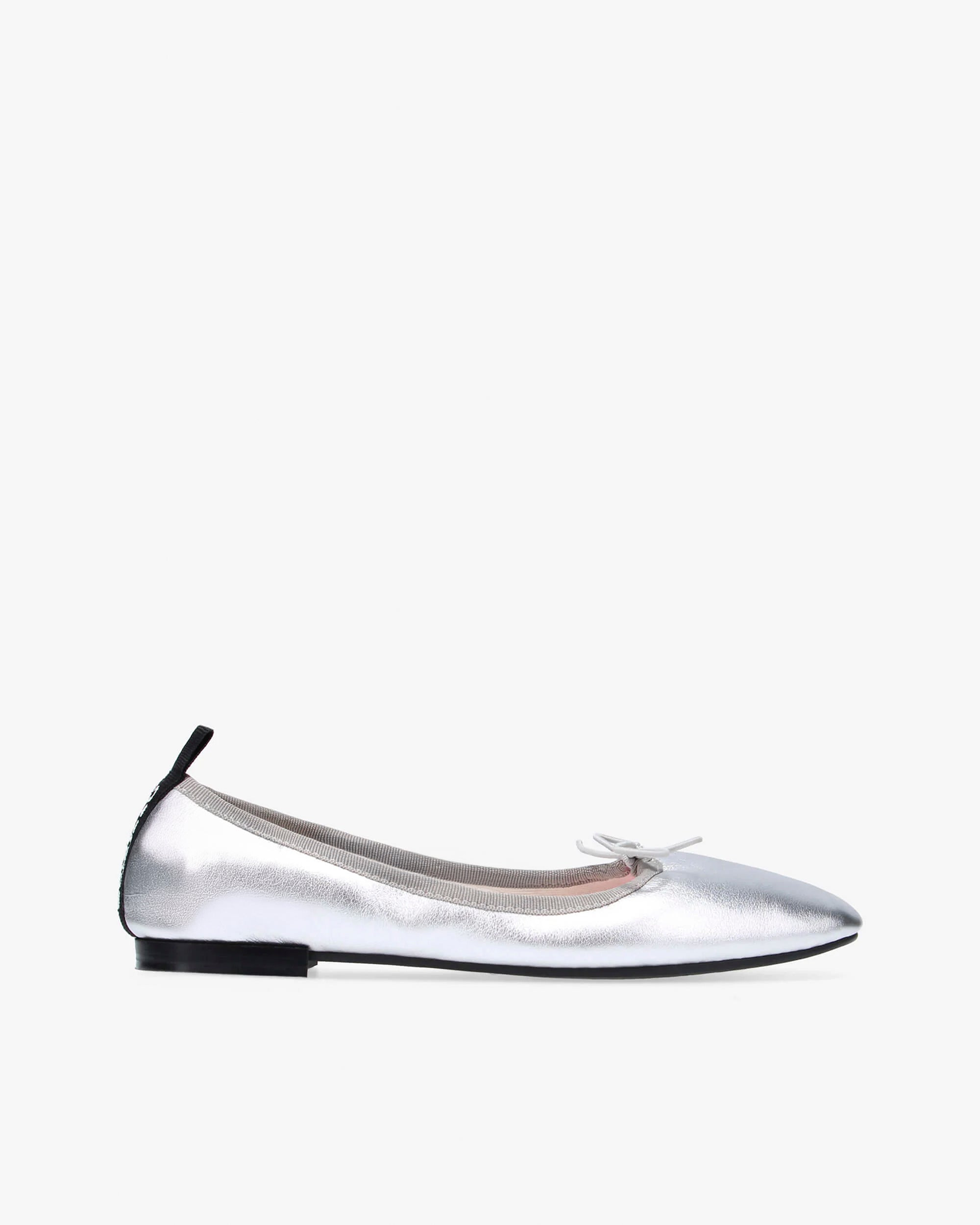 Subtle squarry lines enhancing the mythical codes: made in France using the traditional "stitch-and-return" technique for extreme flexibility, elastic lace, paired with a new logo statement on large gros-grain ribbon in the back of the foot for a sporty allure, recalling dancewear universe. Garance is definitely the new edgy and trendy reinterpretation of Maison Repetto emblematic style. Available with a rubber sole for comfort and resistance, these ballerinas can be worn on any occasion. Material: Nappa calfskin Color: Silver Heels height: 1 cm Original country: France Details: Cowhide leather insole. Cotton lining. Leather wrapped heel. Stitched and returned. Rubber sole. Benefits of the selected manufacturing process: Stitch-and-return is the historical manufacturing process of Maison Repetto, developed by Madame Rose Repetto in 1947. The sole is sewn inside out before being turned inside out. This is an obvious way to create a flexible and emotional model. The rubber sole used on this model offers optimum resistance. Ref: V4210VEM-020-35