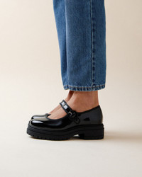 At the heart of the Mary Jane and chunky sole trend, Georgia Chunky dares to embrace modernity with its thick sole and bold silhouette. Comfortable and avant-garde, it redefines elegance with a contemporary edge, perfect for a trendy urban wardrobe. Material : Patent leather Color : Black Heels height: 3 cm Country of origin: Portugal Details: Cowhide leather insole. Lambskin lining. Cemented lasting. TPU sole. Ref: V4241VD-410-36 Product details Cowhide leather insole. Lambskin lining. Cemented lasting. TPU sole.