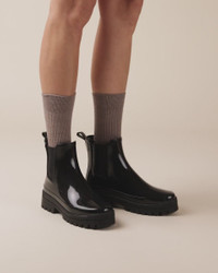 With its thick, lugged sole, the Melissa rainboot is designed to face rainy days with style. This comfortable, practical design is enhanced by a gold R signature accessory bringing sophistication and femininity. Material : Plastic Color : Black Heels height: 3 cm Country of origin: Portugal Details: Microfiber and polyurethane insole. Polyester lining. Injected construction. PVC outsole. Ref: V4268TPE-410-34 Product details Microfiber and polyurethane insole. Polyester lining. Injected construction. PVC outsole.