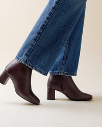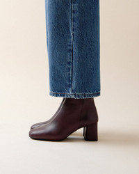 With its structural lines with square toes and rounded edges, the Phoebe boots gives a unique, retro touch to your style. This everyday boot, with a rubber sole for comfort and resistance, maintains the artisanal approach as can be expected with our Maison. Material : Cowhide leather Color : Ristretto brown Heels height: 6 cm Country of origin: Portugal Details: Alcantara insole. Lambskin leather lining. Leather wrapped heel. Rubber sole. Sacchetto construction. Benefits of the selected manufacturing process: The noble and complex sacchetto construction is a manufacturing technique in which the soft leather of the lining is sewn to the leather of the shoe's upper, forming a small bag ('sacchetto' in Italian). The supple leather wraps around the foot like a glove, offering a unique level of comfort unique to the House of Repetto. Ref: V690VED-1334-34 Product details Alcantara insole. Lambskin leather lining. Leather wrapped heel. Rubber sole. Sacchetto construction.