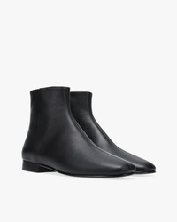 A flat version of our Phoebe boots, this style's structured lines offer a touch that is both retro and distinctive while ensuring optimal comfort. Featuring a rubber sole, the Phoebe flat maintains the artisanal approach that defines our House, combining comfort and durability. Material : Cowhide leather Color : Black Heels height: 2 cm Country of origin: Portugal Details: Alcantara insole. Lambskin leather lining. Leather wrapped heel. Rubber sole. Sacchetto construction. Benefits of the selected manufacturing process: The noble and complex sacchetto construction is a manufacturing technique in which the soft leather of the lining is sewn to the leather of the shoe's upper, forming a small bag ('sacchetto' in Italian). The supple leather wraps around the foot like a glove, offering a unique level of comfort unique to the House of Repetto. Ref: V4249VED-410-34 Product details Alcantara insole. Lambskin leather lining. Leather wrapped heel. Rubber sole. Sacchetto construction.
