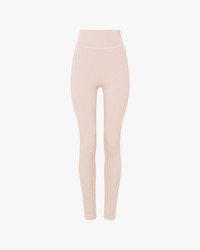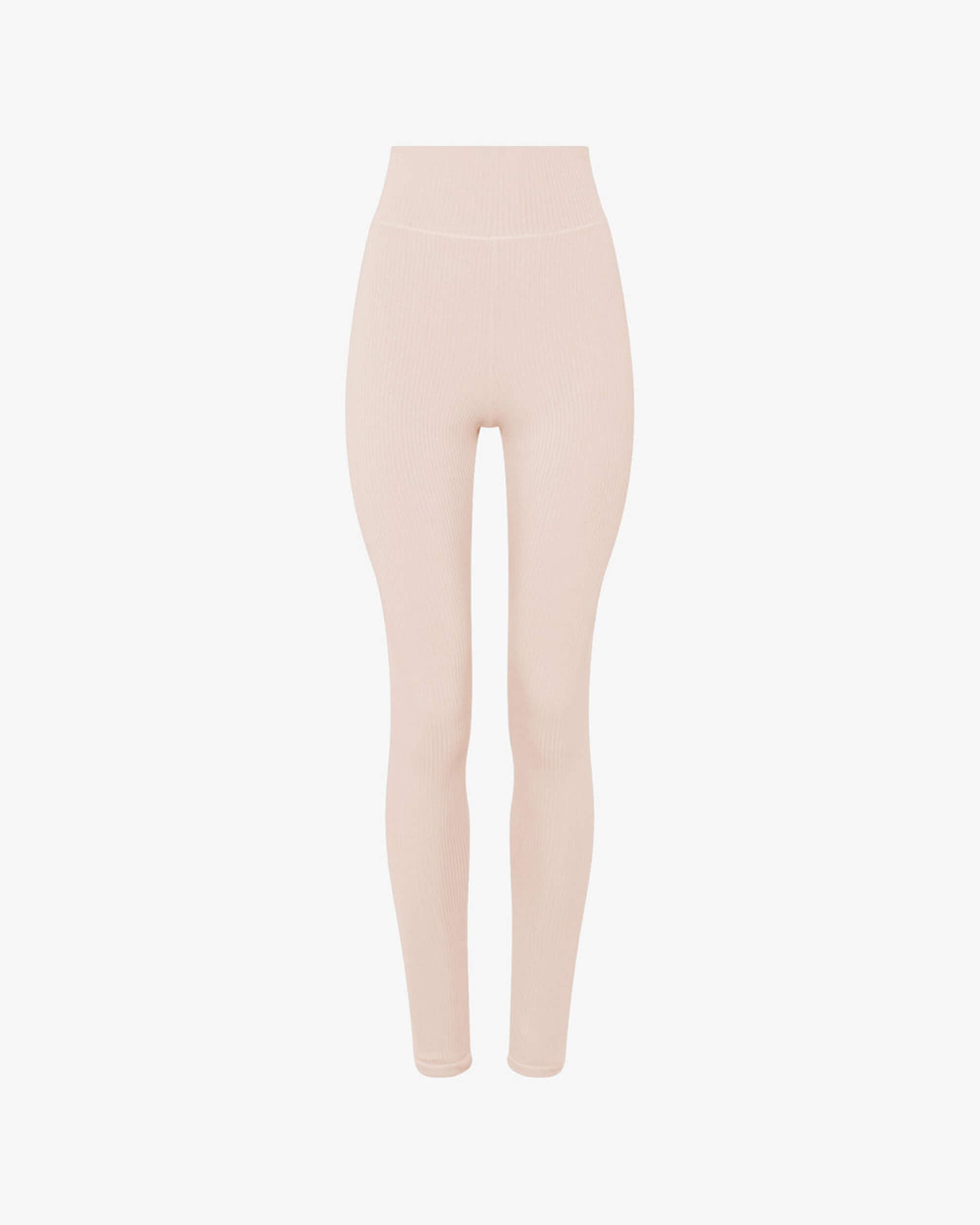 Designed in a soft and stretchy ribbed fabric, these leggings are inspired by the warm-up tights used in dance. Very comfortable, they are a must for Yoga, Pilates or dance practice. Extra-high waistband that can be turned inside-out for low-waist wear. Ankle length Fully lined for opacity and comfort.Material:Viscose Ecovero Composition:Main : 96% Ecovero Viscose - 4% Elastane Lining : 96% Ecovero Viscose - 4% Elastane Color:Petal pink Original country:Tunisia Ref: S0551-047-XS Product details EcoVero viscose rib leggings. Extra-high waist. Fully lined. Designed to arrive to the ankle. R logo at the bottom of the leg. Repetto label on back.