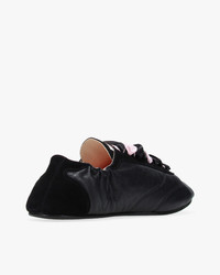 At the crossroad of a city sneaker and a ballet shoe, the Silk Tennis is inspired by ballet flat details. Its double satin laces, thin sole and pleated collar, recall the world of dance at the heart of the House's heritage, offering femininity and incomparable comfort. Material: Lambskin and goatskin velvet Color: Black Heels height: 0 cm Original country: Tunisia Details: Cowhide leather insole. Lambskin leather lining. Cemented lasting. Rubber sole. Ref: V4230MCVD-410-35 Product details Cowhide leather insole. Lambskin lining. Welded construction. TPU sole.