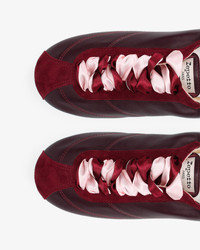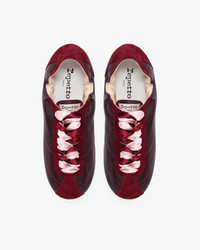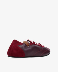 At the crossroad of a city sneaker and a ballet shoe, the Meline is inspired by ballet flat details. Its double satin laces, thin sole and pleated collar, recall the world of dance at the heart of the House's heritage, offering femininity and incomparable comfort. Material : Sheepskin and goatskin leather Color : Deep wine Heels height: Without heel Country of origin: Tunisia Details: Cowhide leather insole. Lambskin leather lining. Sacchetto construction. Rubber sole. Benefits of the selected manufacturing process: The noble and complex sacchetto construction is a manufacturing technique in which the soft leather of the lining is sewn to the leather of the shoe's upper, forming a small bag ('sacchetto' in Italian). The supple leather wraps around the foot like a glove, offering a unique level of comfort unique to the House of Repetto. Ref: V4230MCVD-1415-35 Product details Cowhide leather insole. Lambskin leather lining. Sacchetto construction. Rubber sole.