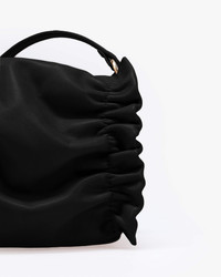 The new Petit Opera bag, an ode to the heritage of the Maison Repetto. Supple lines, soft leather and pleated details express the grace and femininity emblematic of the ballet world. Its round, generous shape, in mini format, draws its inspiration from the iconic design of dance bags. Made in Italy from quality leathers lined with satin, this new model is worn crossed body. The Petit Opera bag is signed with a removable grosgrain bow, delicately underlining its unique style. Material: Nappa calfskin Color: Black Dimensions: Height 16 cm x Width 10 cm x Depth 8 cm Carried: Hand and Crossbody Details: Magnetic closure on top. Pink satin lining. Debossed logo. Gold metal trims. 100 cm strap. Disclaimer: Each piece of leather we select is unique. As a result, natural leather can vary in hue, texture and roughness. Ref: M0777VE-410 Product details Magnetic closure on top. Pink satin lining. Debossed logo. Gold metalwork. 100 cm shoulder strap.