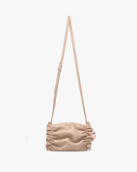The new Petit Opera bag, an ode to the heritage of the Maison Repetto. Supple lines, soft leather and pleated details express the grace and femininity emblematic of the ballet world. Its round, generous shape, in mini format, draws its inspiration from the iconic design of dance bags. Made in Italy from quality leathers lined with satin, this new model is worn crossed body. The Petit Opera bag is signed with a removable grosgrain bow, delicately underlining its unique style. Material: Nappa calfskin Color: Cashmere beige Dimensions: Height 16 cm x Width 10 cm x Depth 8 cm Carried: Hand and Crossbody Details: Magnetic closure on top. Pink satin lining. Debossed logo. Gold metal trims. 100 cm strap. Disclaimer: Each piece of leather we select is unique. As a result, natural leather can vary in hue, texture and roughness. Ref: M0777VE-1451 Product details Magnetic closure on top. Pink satin lining. Debossed logo. Gold metalwork. 100 cm shoulder strap.