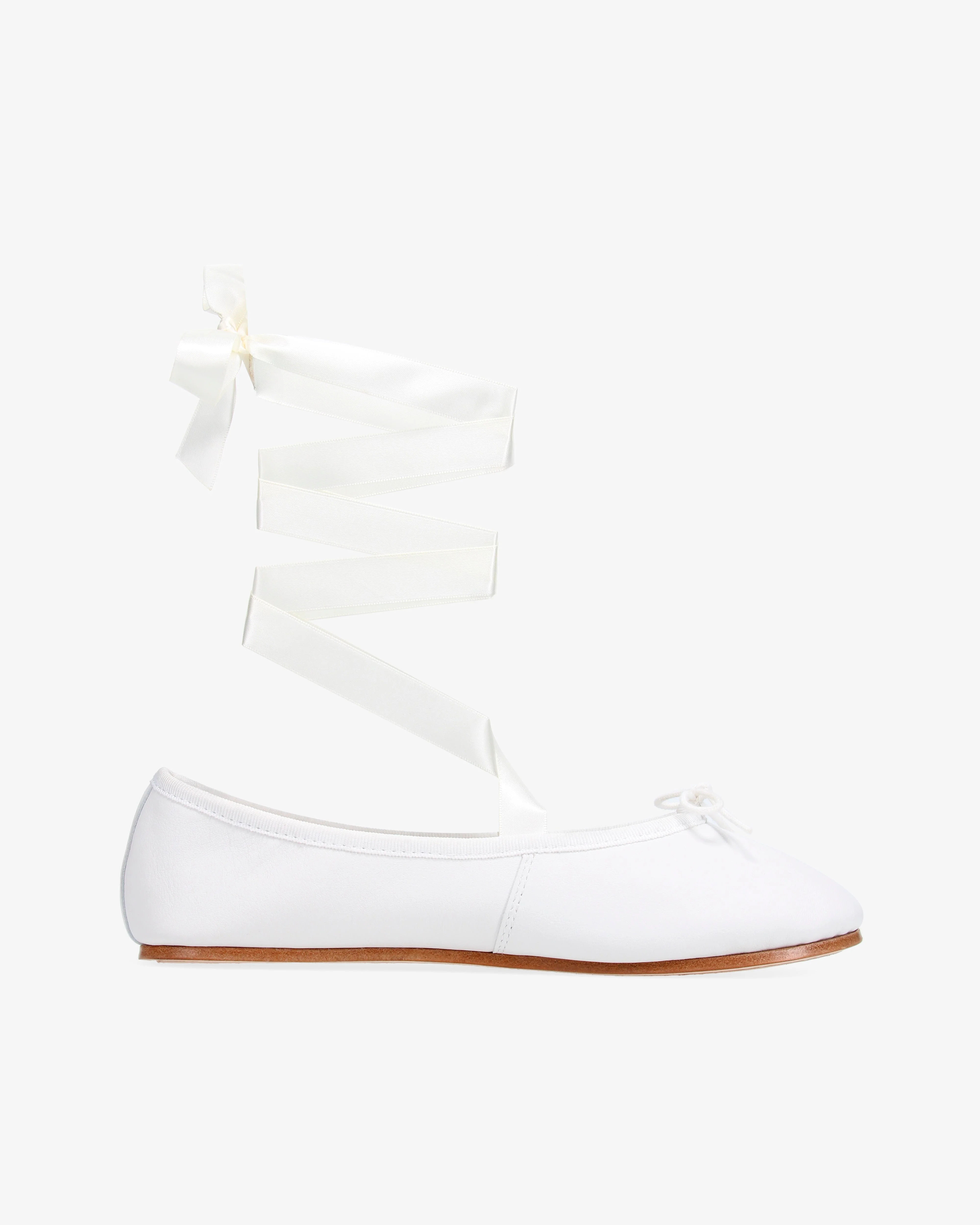 The Sophia ballet flats are an iconic model of the Maison Repetto. Inspired from the half-pointe shoes, they are without distinction from the right foot to the left and laced with a satin ribbon. These ballet flats with urban style proudly bring a touch of classical dance in the city, for a graceful and singular look. Material : Cowhide leather Color : White Heels height: Without heel Country of origin: Tunisia Details: Ballerinas with satin ribbon. Cowhide leather insole. Cotton lining. Leather sole. Benefits of the selected manufacturing process: The blake stitching construction is handcrafted and robust. It's a manufacturing technique in which the insole, outsole and upper are sewn together with the same thread, providing lightness, strength and flexibility. Ref: V4231VE-050-34 Product details Ballerinas with satin ribbon. Cowhide leather insole. Cotton lining. Leather sole.