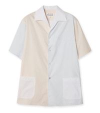 Camp-Collar Colour-Block Cotton-Poplin Shirt White
