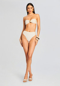 Elevate your poolside glamour with Shani Shemer’s Alba Bottom—a swimwear essential that combines comfort and allure. Featuring a high waist design, this bikini bottom offers both a flattering fit and sophistication, making it an ideal choice for your beach wardrobe. Shown here in Cream. About Shani Shemer Following her worldly travels, Israel based designer, Shani Shemer, set out to create a label full of revolutionary, refreshing, and one-of-a-kind swimwear. Each piece, handcrafted with quality fabrics and unique patterns—is cut in ultra-flattering shapes that accentuate the female form. Set apart by its meticulous attention to detail, tailored designs give a nod to the season’s swimwear trends while still maintaining the timeless, feminine elegance you crave in a swimsuit. Designed by women, for women, Shani Shemer Swimwear is sure to make you feel your best. - 80% Lycra, 20% Elastane - Made in Thailand - Model is 5'11" wearing size S - Style No. 24RBB01