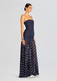 Transform into a goddess in our Annalise Dress. This strapless gown features a ravishing slit and ruched bodice, creating a timeless yet modern look. Perfect for your next event, this dress exudes elegance and sophistication, making you the center of attention. - 97% Polyester, 3% Spandex - Made in China - Model is 5'10" wearing size S - Style No. - FW24-10001