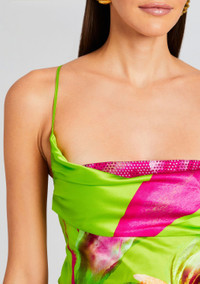 Unleash vibrant elegance and playful sophistication with our Azura Dress—a radiant piece with an embellished neckline and flirtatious barely-there straps. This dress embodies the carefree spirit of summer while incorporating an aura of refined charm and playful allure. Embrace the fusion of playful chic at any daytime soirees or stylish evening affairs. Shown here in Lime Anthurium. - 95% Silk, 5% Spandex - Made in China - Model is 5'10" wearing size S - Style No. - R24-8367