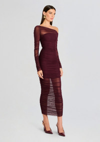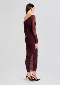 Achieve a chic look in SER.O.YA’s Chantae Dress. This captivating bodycon one-shoulder midi dress, features a trendy spaghetti strap detail with elegant sheer sleeves and thumbholes, and a sheer bottom. This dress is the perfect blend of sophistication and allure, designed to showcase your style with a touch of drama. Shown here in Merlot. ABOUT SER.O.YA Established in 2020, SER.O.YA is a New York-based ready-to-wear label founded with the intention to upgrade and refine your wardrobe. With a focus on crafting effortlessly cool and timelessly luxurious designs—SER.O.YA creates minimalist collections powered by maximum style. Everyday essentials in the form of breathable knits, vintage inspired denim, and ultra-luxe fabrications are interchangeably worn for easy dressing that never compromises. With versatility at its core, the brand’s simple yet significant aesthetic comes through in classic silhouettes that are anything but conventional. - 90% Nylon, 10% Spandex - Made in China - Model is 5'10" wearing size S - *undergarment included* - Style No. 3479-17