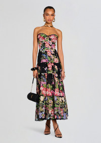 The Danny Dress adds a feminine touch to your vacation style. This strapless style features a delicate guipure lace trim. With artful boning throughout the bodice, a shirred back detail cascades into a romantic tiered skirt with matching trim. The style is finished with a hidden zipper at the side. Shown here in Black Botanic. About Charo Ruiz Ibiza Established in 1989, Charo Ruiz is a resort wear brand renowned for its luxe Spanish designs. Characterized by natural fabrics, embroidery, and delicate lace, each piece is inspired by the culture and purity of Ibiza. With an emphasis on local craftsmanship and traditional design, Charo Ruiz aims to create feminine silhouettes that live as long as the memories of the idyllic and eternal island itself. The family owned business continues to push boundaries each season, instilling personality, freedom, and uniqueness into each piece designed. - 90% Cotton, 10% Polyester - Made in Portugal - Model is 5'10" wearing size S - Style No. - 253610 - Note: Each garment's pattern is slightly unique.