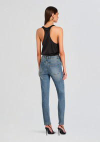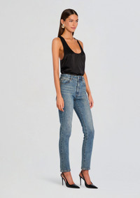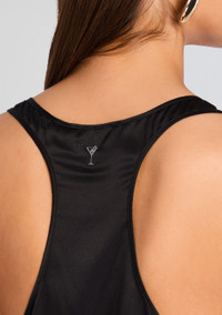 Perfect for layering or as a standalone top, the Dori Top is a chic, silky, scoop neck that combines timeless style with unbeatable luxurious comfort, making it an essential addition to your wardrobe. Shown here in Black. - 95% Silk, 5% Spandex - Made in China - Model is 5'10" wearing size XS - Style No. SS24-8666