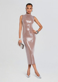 Indulge in luxury with our Dove Sequin Knit Dress. Featuring a high neck design and all over sequins, this dress is perfect for any occasion. Stand out in style and elevate your wardrobe with this elegant and tasteful statement piece. - 90% Wool, 10% Cashmere - Made in China - Model is 5'10 wearing size S - Style No. - HL25-10652