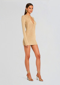 About SER.O.YA Established in 2020, SER.O.YA is a New York-based ready-to-wear label founded with the intention to upgrade and refine your wardrobe. With a focus on crafting effortlessly cool and timelessly luxurious designs—SER.O.YA creates minimalist collections powered by maximum style. Everyday essentials in the form of breathable knits, vintage inspired denim, and ultra-luxe fabrications are interchangeably worn for easy dressing that never compromises. With versatility at its core, the brand’s simple yet significant aesthetic comes through in classic silhouettes that are anything but conventional. - 74% Viscose, 26% Metallic - Made in China - Model is 5'10" wearing size S - Style No. - S-SS25-4913-17